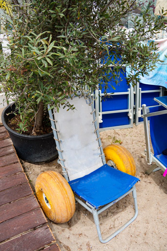 Ci impegniamo a garantire che tutti i nostri ospiti possano godere della bellezza del mare senza barriere. Offriamo il servizio di utilizzo gratuito della sedia JOB, progettata specificamente per il trasporto di persone con disabilità o anziani, facilitando l’accesso alla spiaggia e al mare.